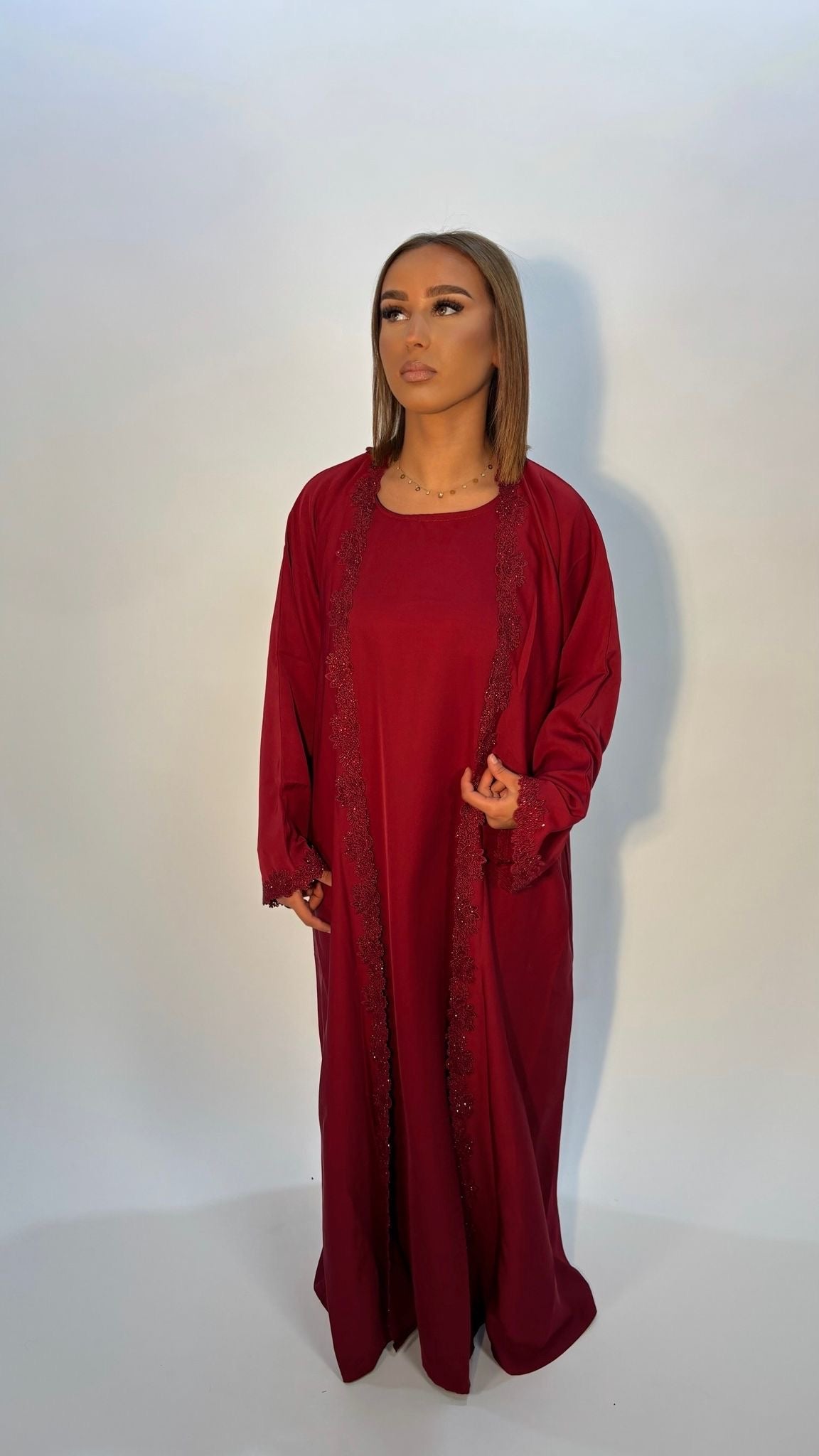 Sarah B. Dec 2025Verified BuyerUn Vrai Travail ArtisanalLa coupe est fluide, le tissu est structuré et les détails sont impeccables. Rien à voir avec les abayas classiques. C’est du vrai haut de gamme.